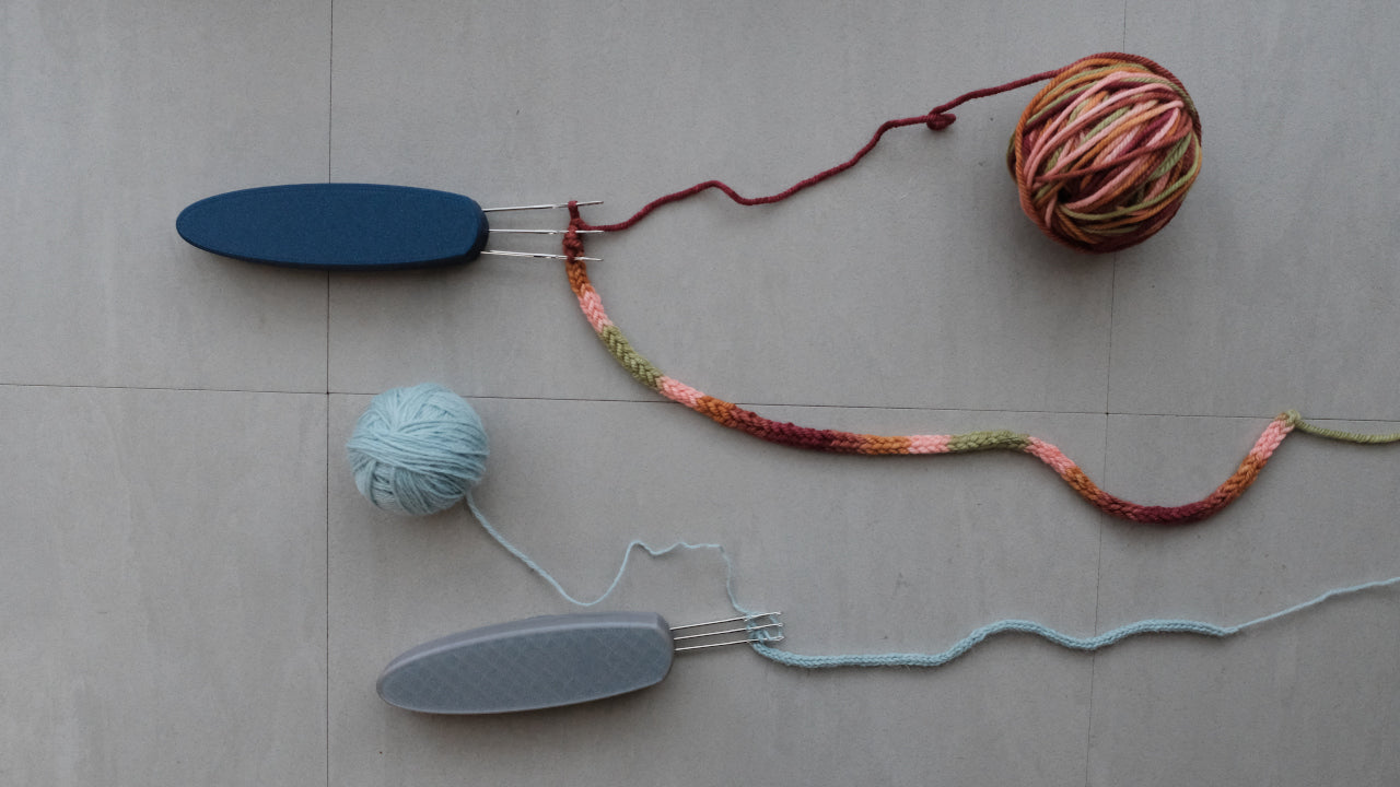 3目のi-cordが編める道具です!(XLは4目のi-cordが編めます!)