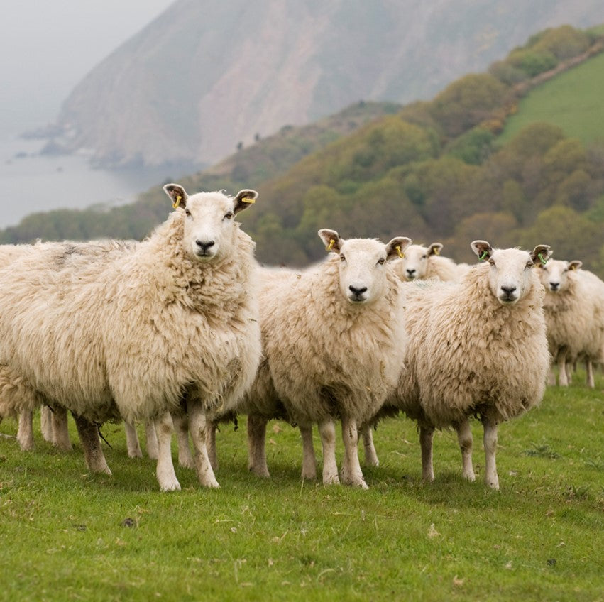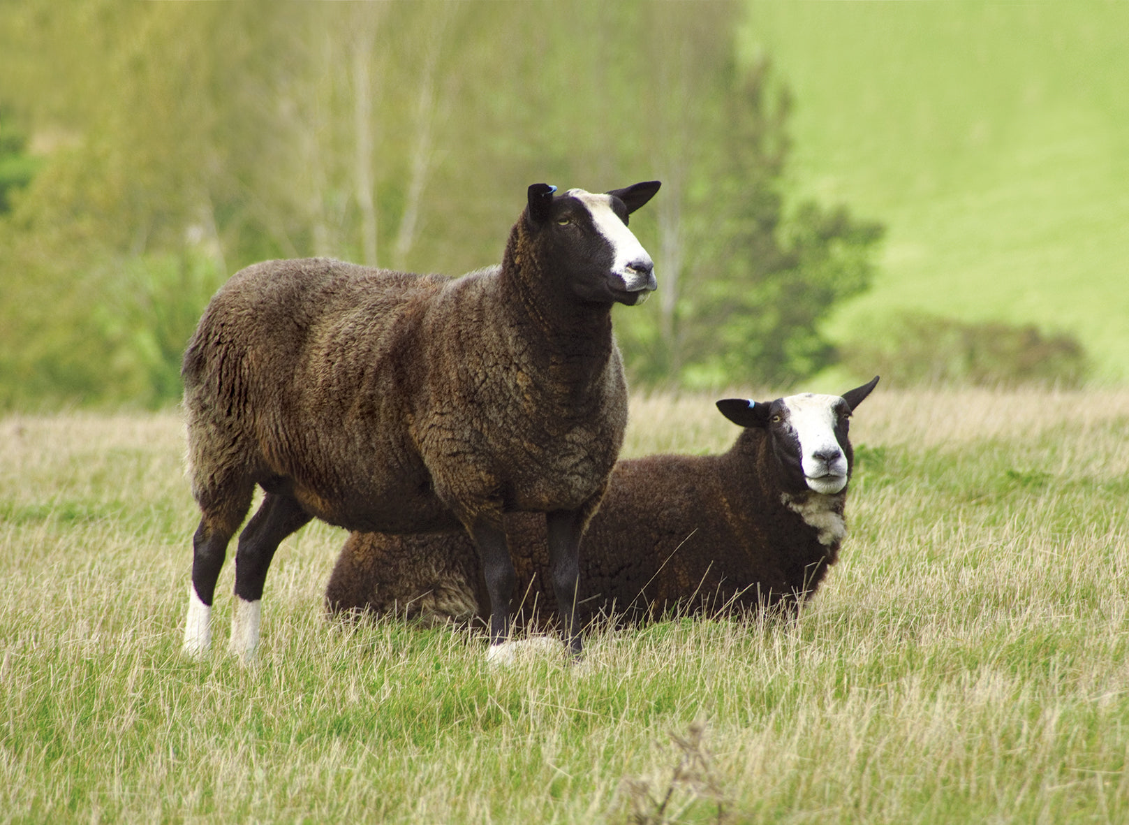 Zwartbles (こげ茶色の羊) と Exmoor Blueface (白い羊) のブレンドは非常に弾力性があり丈夫です。