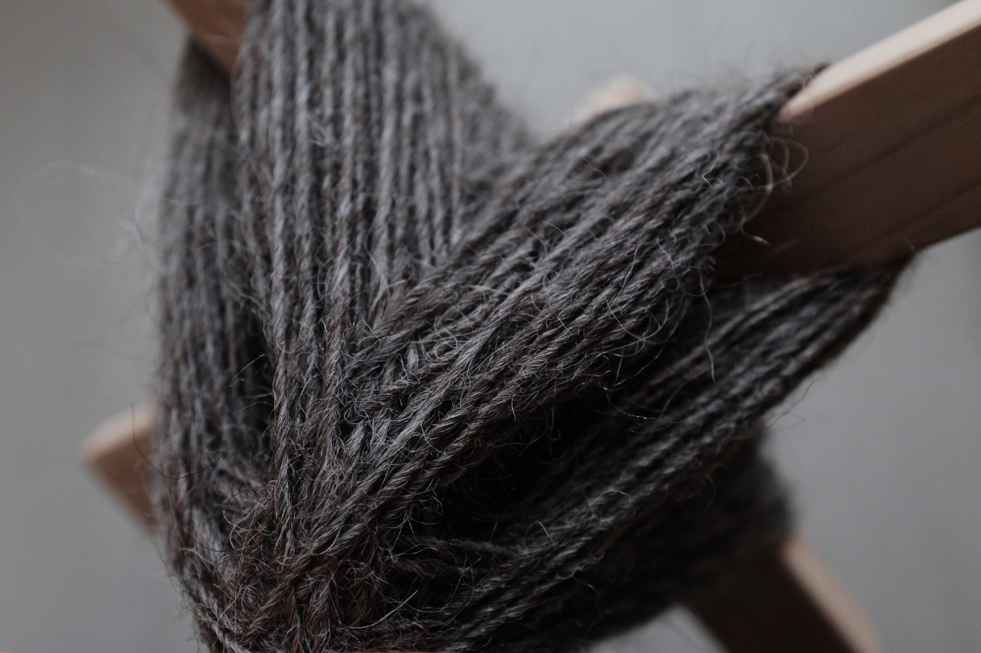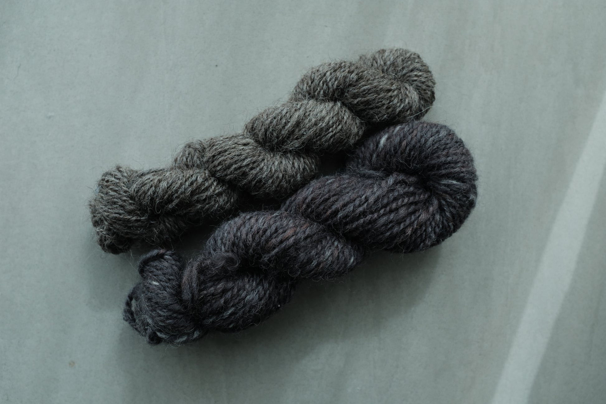羊毛は外国産の紡ぎやすい種類のもので、機械でカードをかけて紡ぎやすい状態にしてあるものを選んでいます。無染色、羊そのままの色です。(国産の羊毛のおまけもつきます♡)